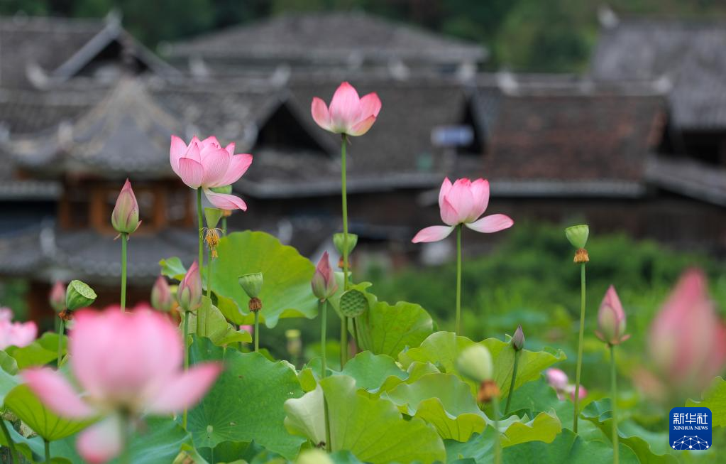 7月1日在贵州省黔东南苗族侗族自治州从江县洛香镇四联村拍摄的荷花。新华社发(罗京来 摄)