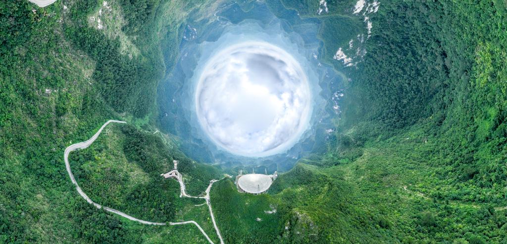 7月26日拍摄的“中国天眼”全景(维护保养期间无人机拍摄)。新华社记者 欧东衢 摄