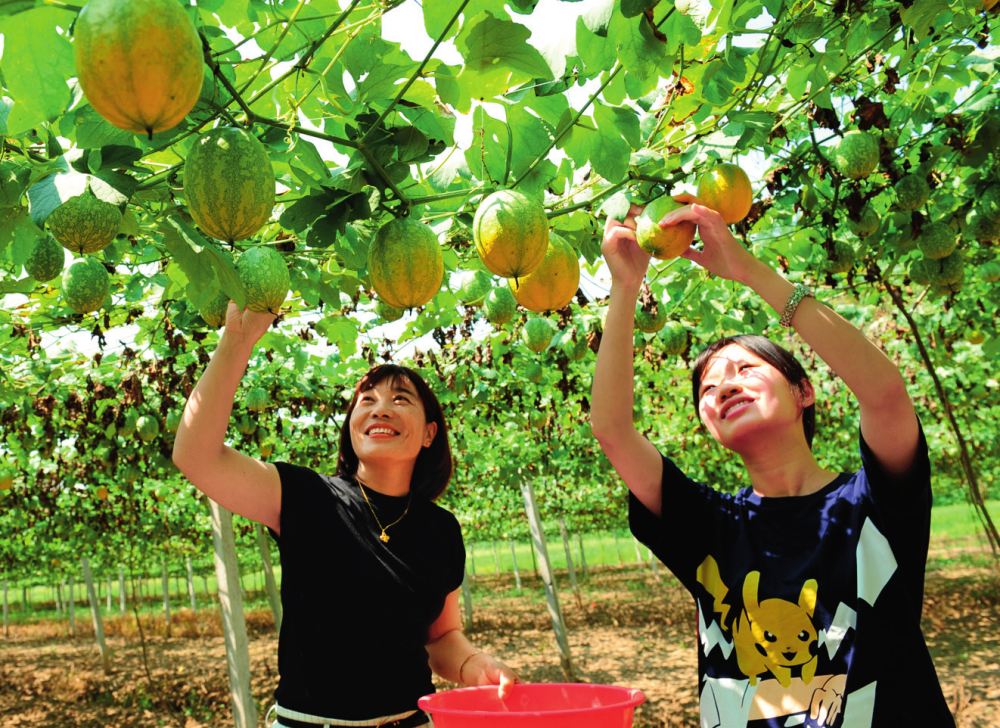 “我们不仅入股吊瓜产业园,还发展大棚蔬菜,种植优质粮食。”秦家场村党支部副书记张金平说,今年是个丰收年,预计村集体收入超50万元,比去年增加123%。