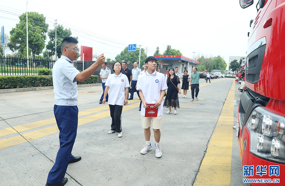 陈龙飞、甘红梅两位学子参观消防营地。新华网发