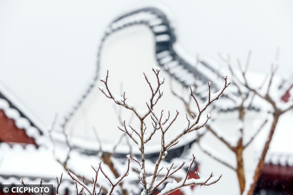 雪景映衬下,文物古建和中式建筑呈现如同国画的美景。