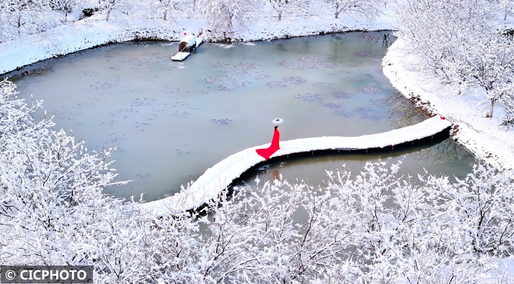 ↑2024年2月4日在湖北省武汉市沙湖公园拍摄的雪景。CICPHOTO/赵军 摄