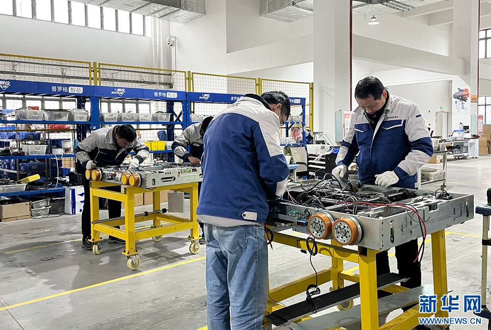 2月10日,大年初一。位于湖北省大冶市大冶湖高新区的智芯科技(湖北)有限公司,办公楼门口挂起大红灯笼,迎春过年氛围浓郁。走进组装车间,却是一片繁忙生产景象:10余名装配工程师正在紧锣密鼓地组装货架机器人;不远处的调试区,数个重载托盘四向机器人和全向式货箱机器人灵巧地来回穿梭。“公司的订单已经排到了年后,春节期间只能加紧生产。”智芯科技行政总监倪康俊说。