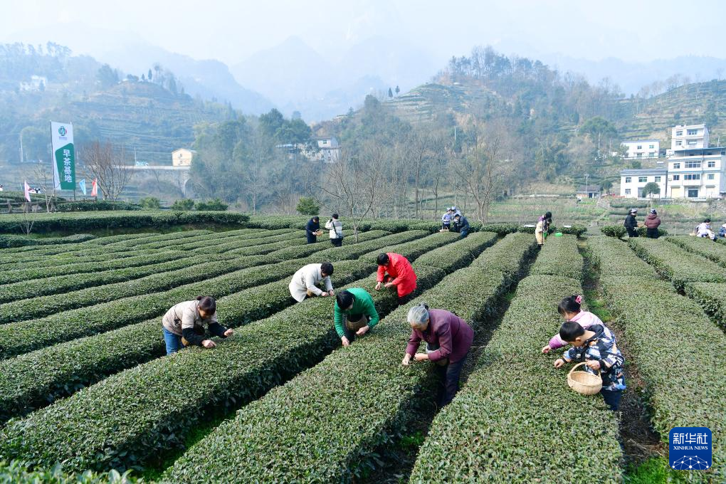 3月2日,茶农在三峡库区湖北省秭归县茅坪镇松树坳村一茶园采摘早春茶。