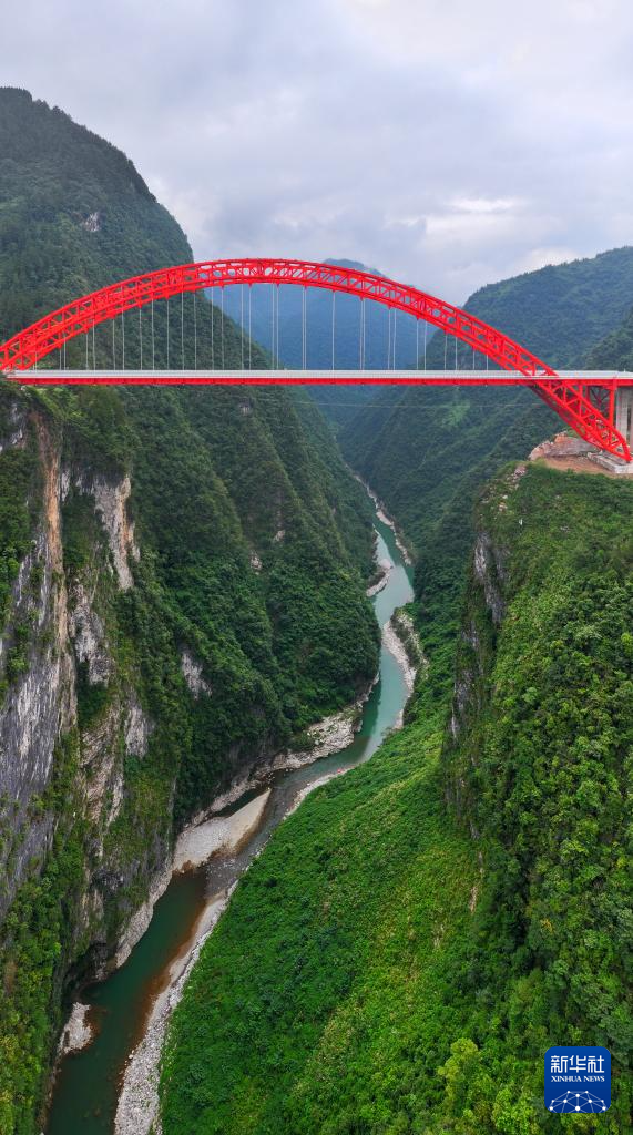 这是宜来高速公路鹤峰东段溇水河特大桥(无人机照片,8月29日摄)。
