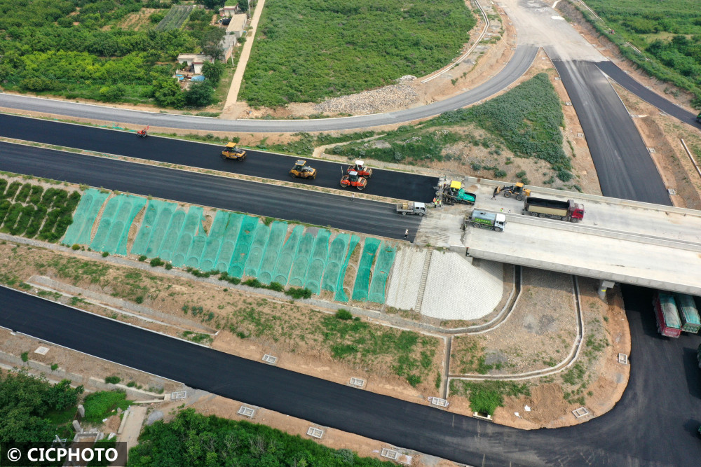 ↑2024年8月26日在湖南省永州市道县寿雁镇拍摄的零道高速施工现场。(无人机照片)CICPHOTO/蒋克青 摄