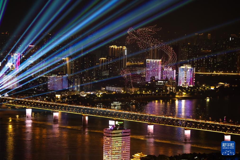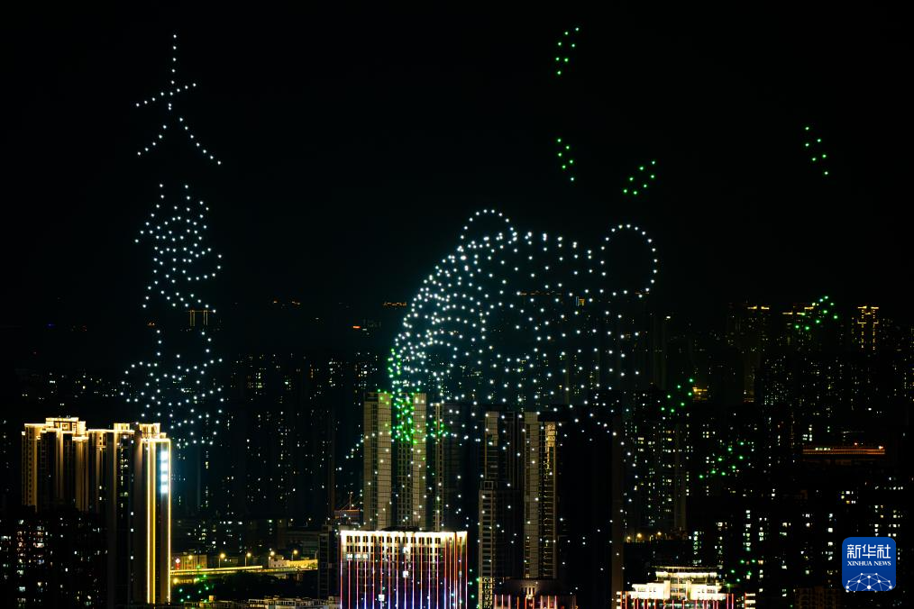 9月14日拍摄的无人机表演。