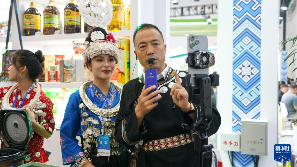 参展商在直播带货。新华社记者 熊翔鹤 摄