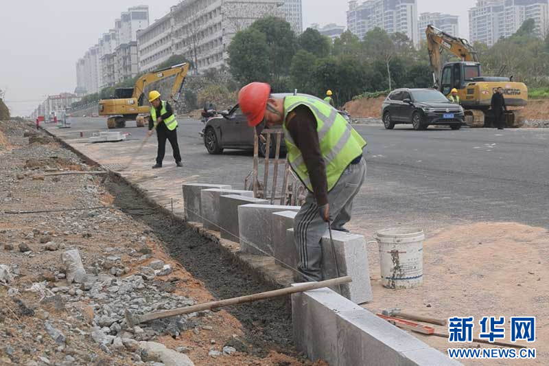日前,在通城经济开发区路网工程三赢兴路建设现场,工人们正紧张有序地进行道路两侧路边石安装施工,确保道路边缘线形流畅、拼缝紧密。同时,道路标线施划、绿化带补植、智能交通设备调试等收尾工作也在同步推进。