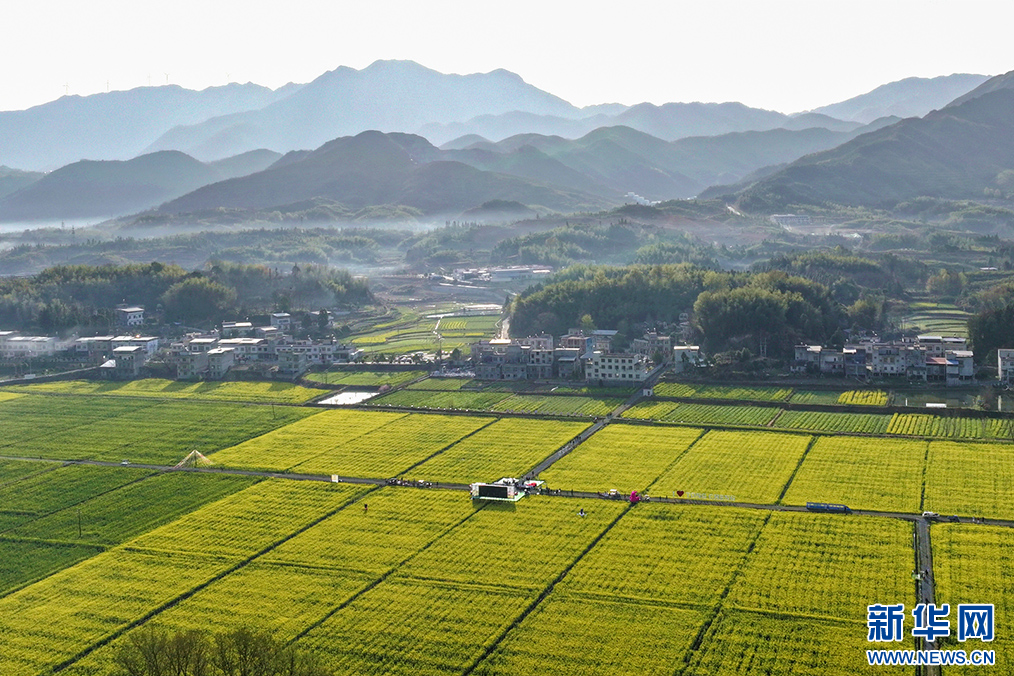 图为航拍湖北省咸宁市通城县塘湖镇龙印村千亩油菜基地。新华网发 刘建平摄