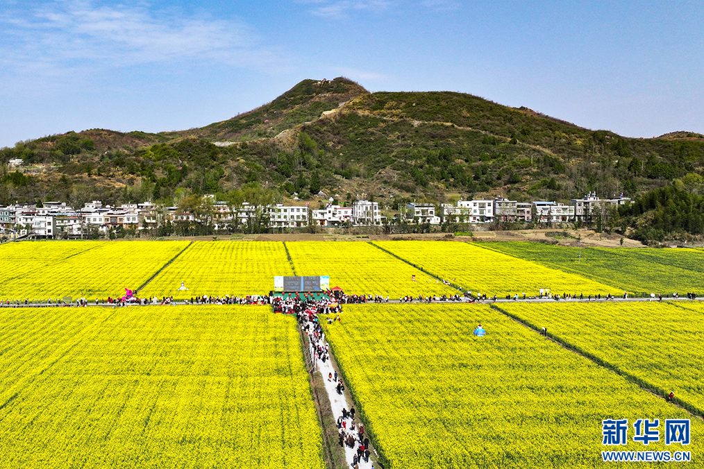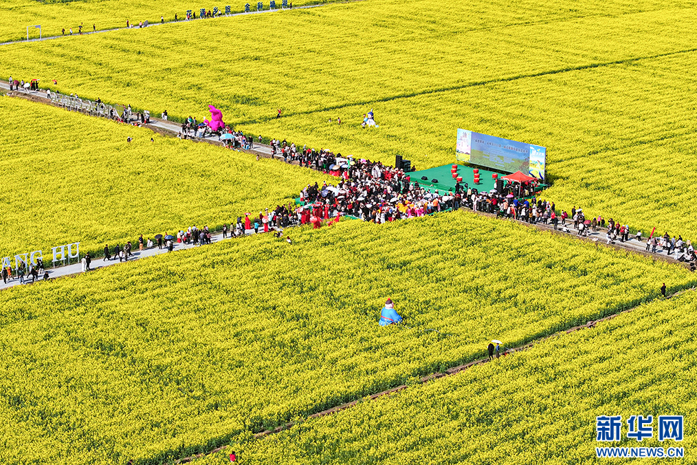 日前,湖北省咸宁市通城县在塘湖镇龙印村千亩油菜基地举办第二届文旅助农惠农赏花季活动,吸引众多市民前来观看表演、踏青赏花,乐享春光。(刘建平)