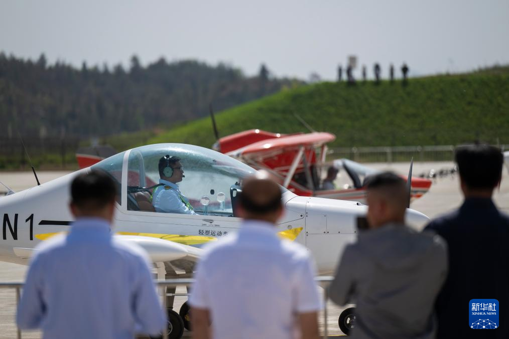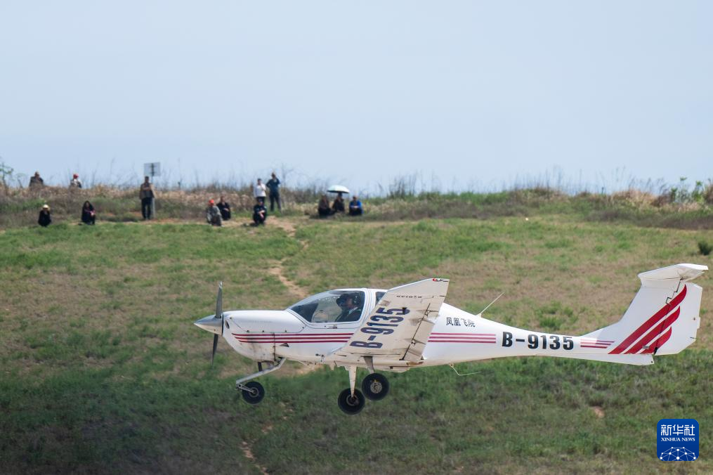 4月15日,竹山通用机场附近居民观看飞行表演。