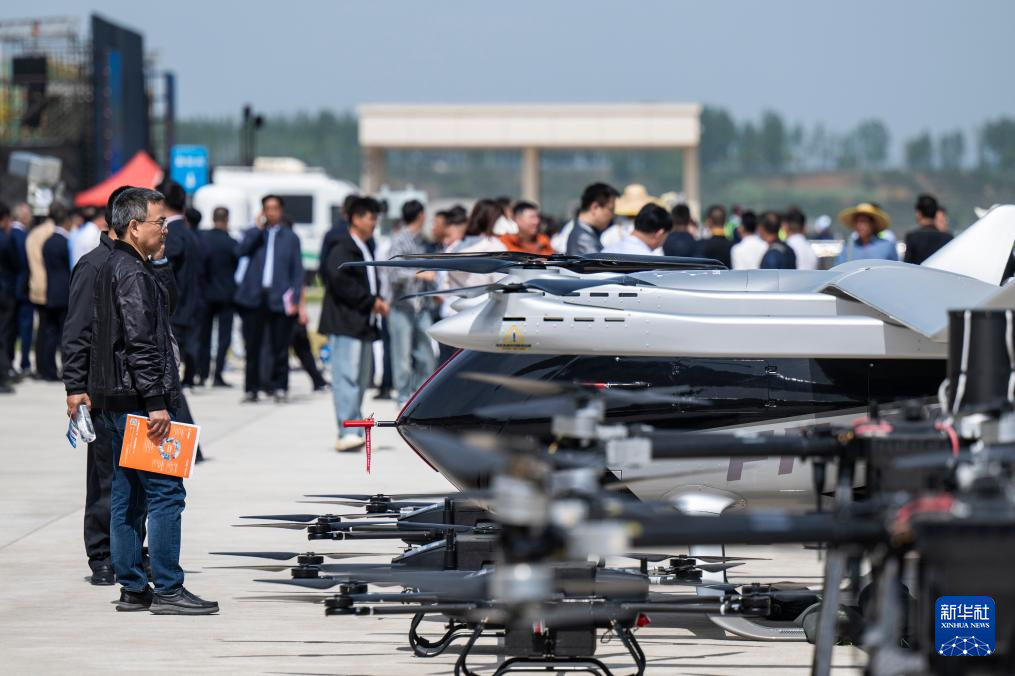 4月15日,人们在启用仪式现场参观展示的低空飞行器。