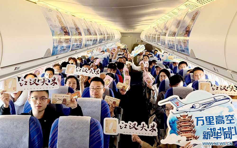 2025年9月24日,“江汉大米”打造“空中礼物”主题航班,扩大品牌影响力。新华网发(湖北省粮食行业协会供图)