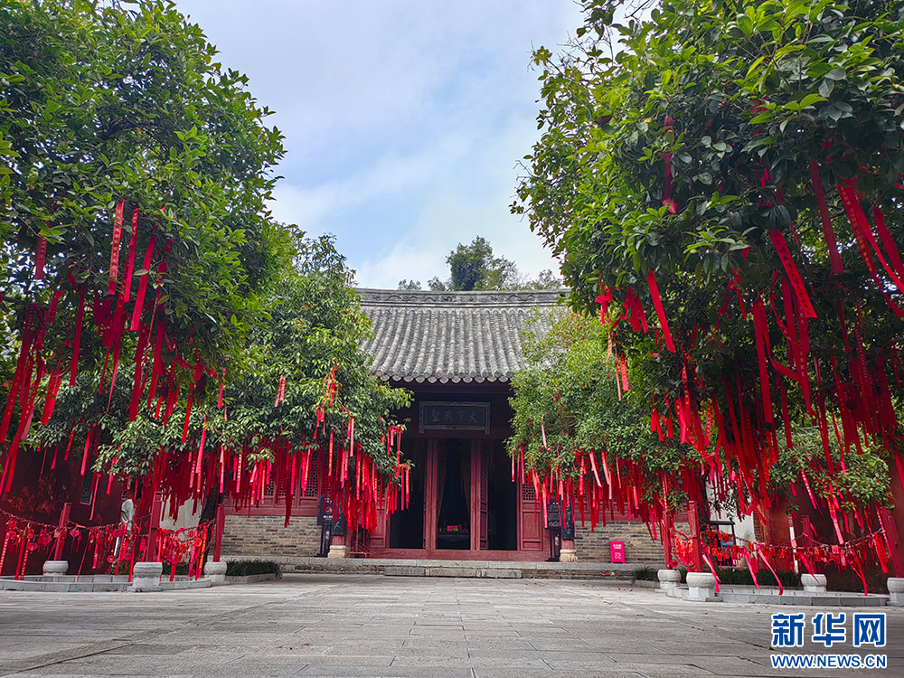 9月11日,当阳关陵祈福点,游客挂满火红祈福带。新华网刘晓丽摄