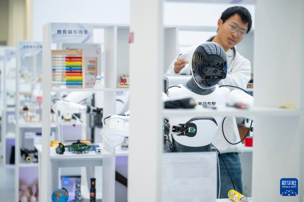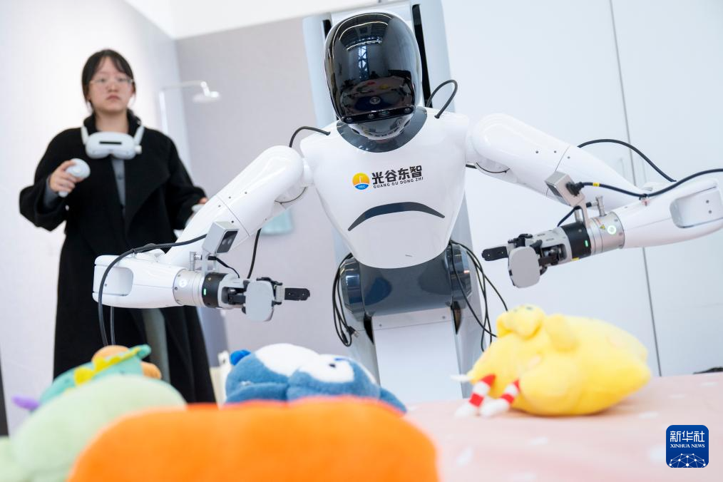 11月6日,在湖北人形机器人创新中心,人形机器人数据采集员在进行数据采集工作。新华社记者 伍志尊 摄