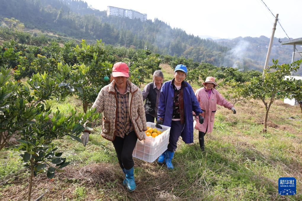 新华社武汉11月27日电(记者黎昌政)冬日暖阳洒满峡江两岸,湖北省巴东县沿渡河镇石喊山村的山坡上,5000亩柑橘园硕果压满枝头。五年前,这里还是一片荒坡,如今,荒坡变身郁郁葱葱的绿坡,沉甸甸的果实成为兴乡富民的“金果”。