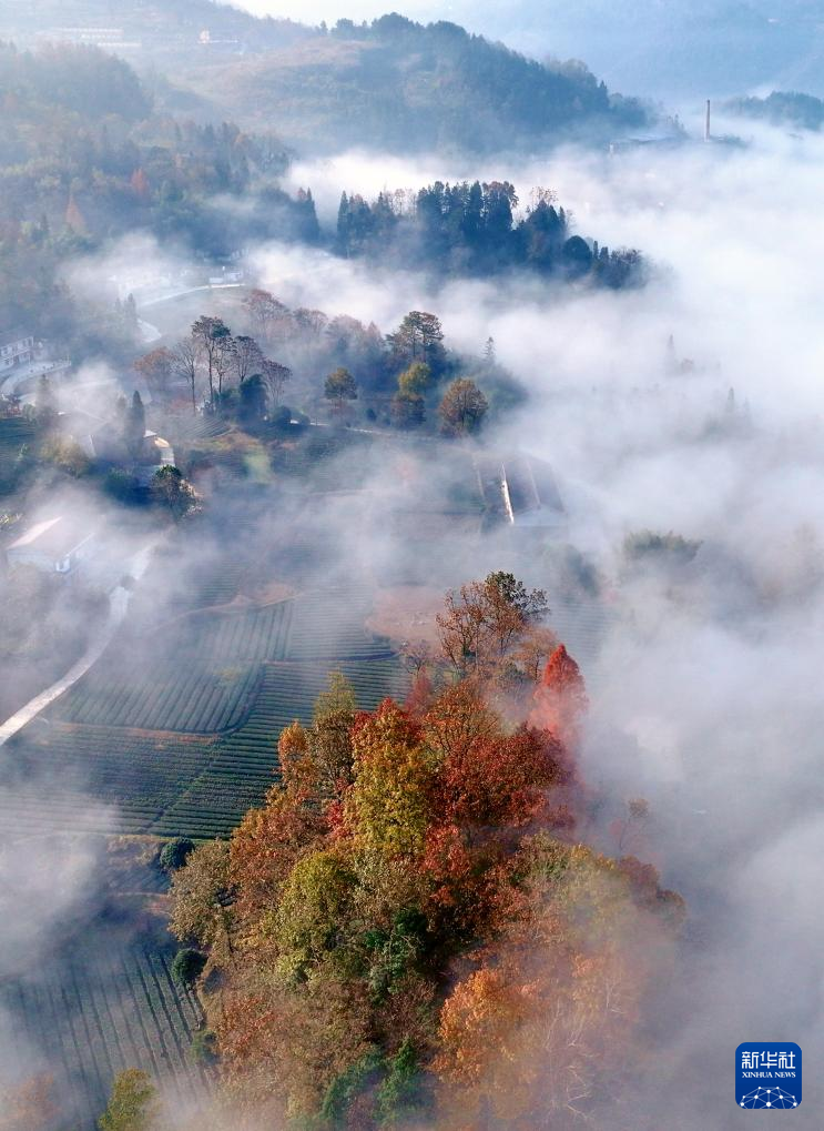 12月1日在湖北省宣恩县珠山镇拍摄的山间一景(无人机照片)。