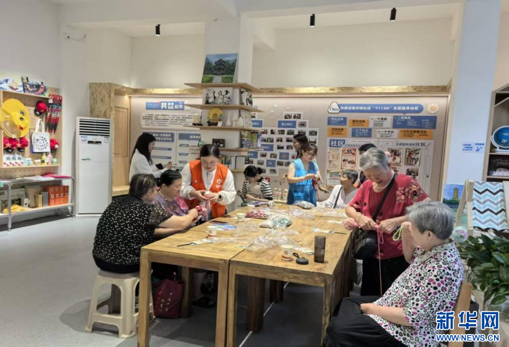 图为滨湖社区开展敬老爱老志愿服务活动。新华网发