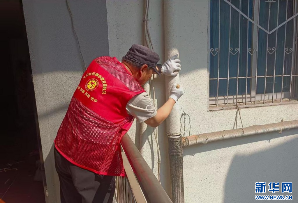 图为北门社区暖心便民志愿服务队维修漏水管道。新华网发