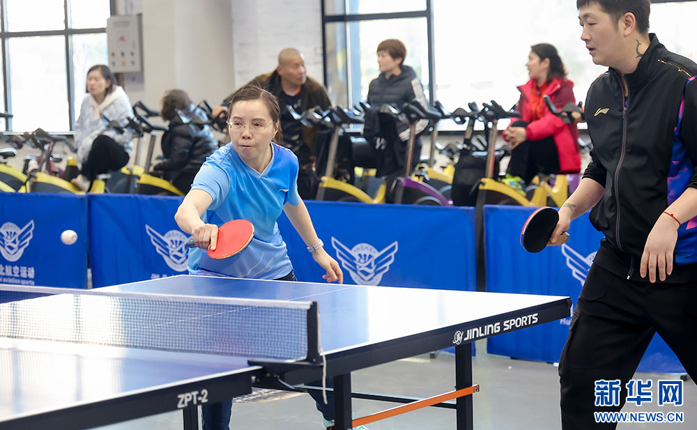 本次总决赛广华寺街道参赛队员乒乓球混双比赛照。新华网发(湖北省体育局供图)