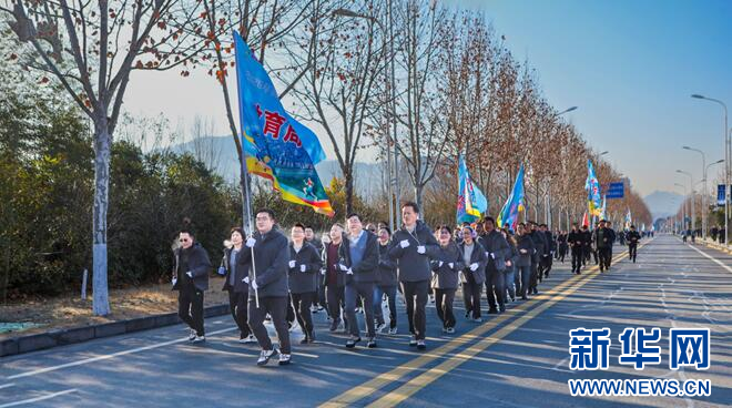 沿途三色堇迎霜傲放、天河水潋滟泛光、鹭鸟回旋蹁跹,冬日郧西风光尽收眼底。旌旗迎风猎猎、口号声此起彼伏、脚步声铿锵有力,成为冬日里一道靓丽的风景线。