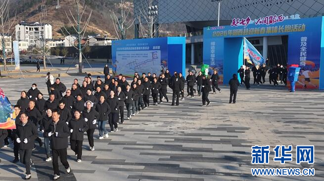 图为郧西县2026年迎新春集体长跑现场。新华网发 徐军 摄
