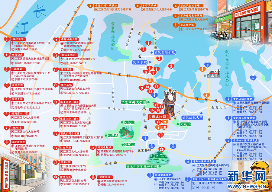 1月9日,武汉市江夏区联合新华网推出“江夏区新就业群体友好地图”平面手册,手册以手绘地图形式列举辖区内9类35个特色友好场景,标注重点区域友好场景详细信息,以可视化、场景化方式推动“骑手友好街区”建设从蓝图走向现实。
