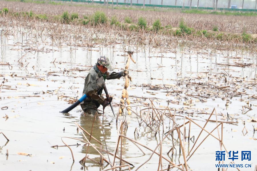 图为工人们挖蔡甸莲藕现场。新华网发 陈雪莹摄