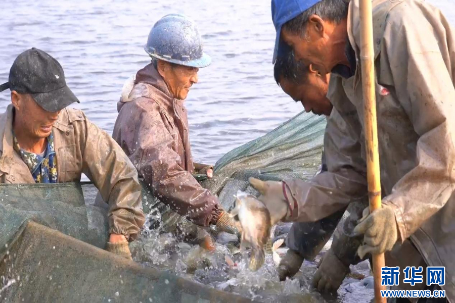 图为工人们捕捞江夏鳜现场。新华网发 江夏区“小青农”团队供图