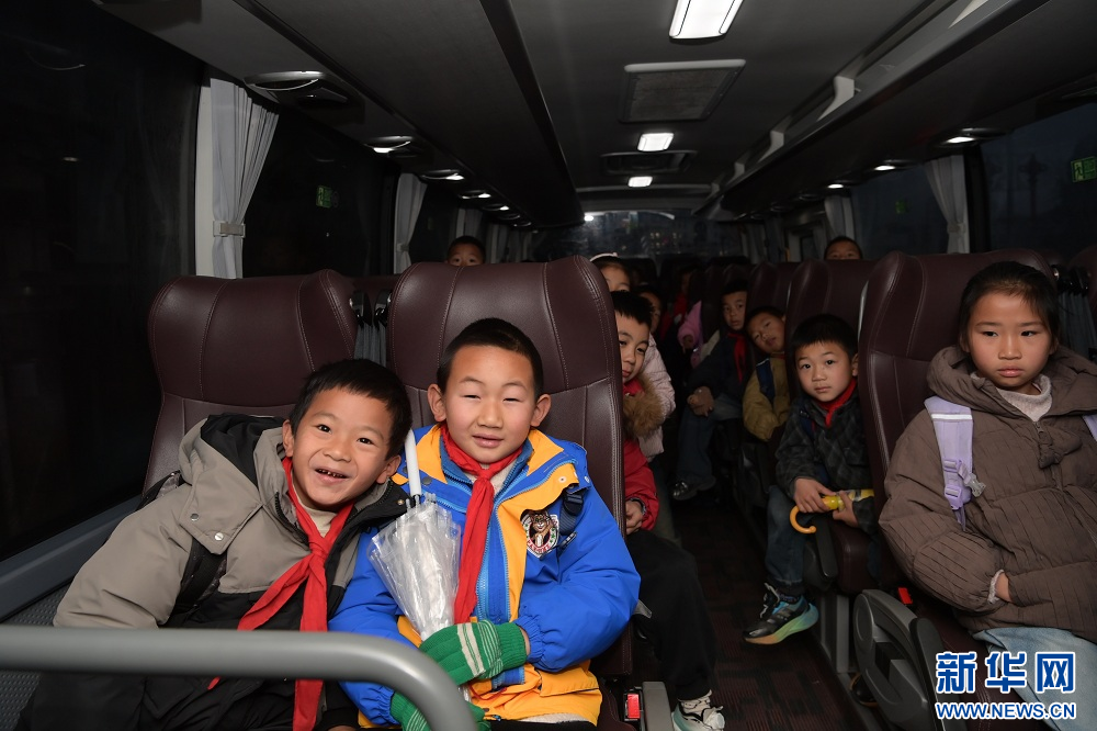 图为2025年12月22日,恩施州鹤峰县容美镇康岭小学学生乘坐定制公交车上学。新华网发 杨顺丕摄