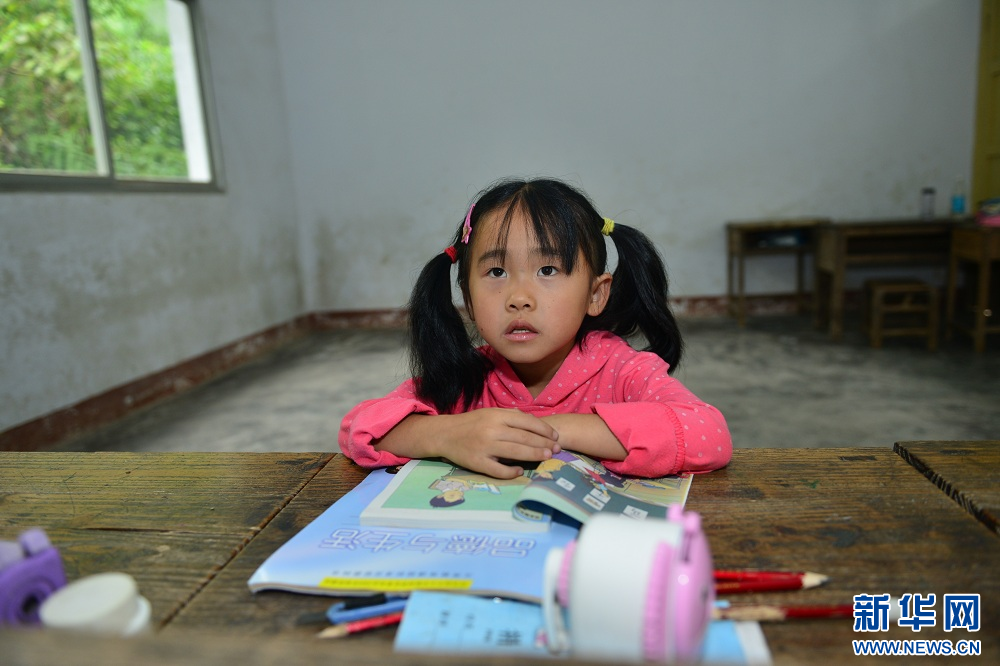 图为2014年9月1日,恩施州恩施市龙凤镇大杉树湾教学点的学生刘欣怡在听课。这是仅有一师一生的“微小学”。新华网发 杨顺丕摄