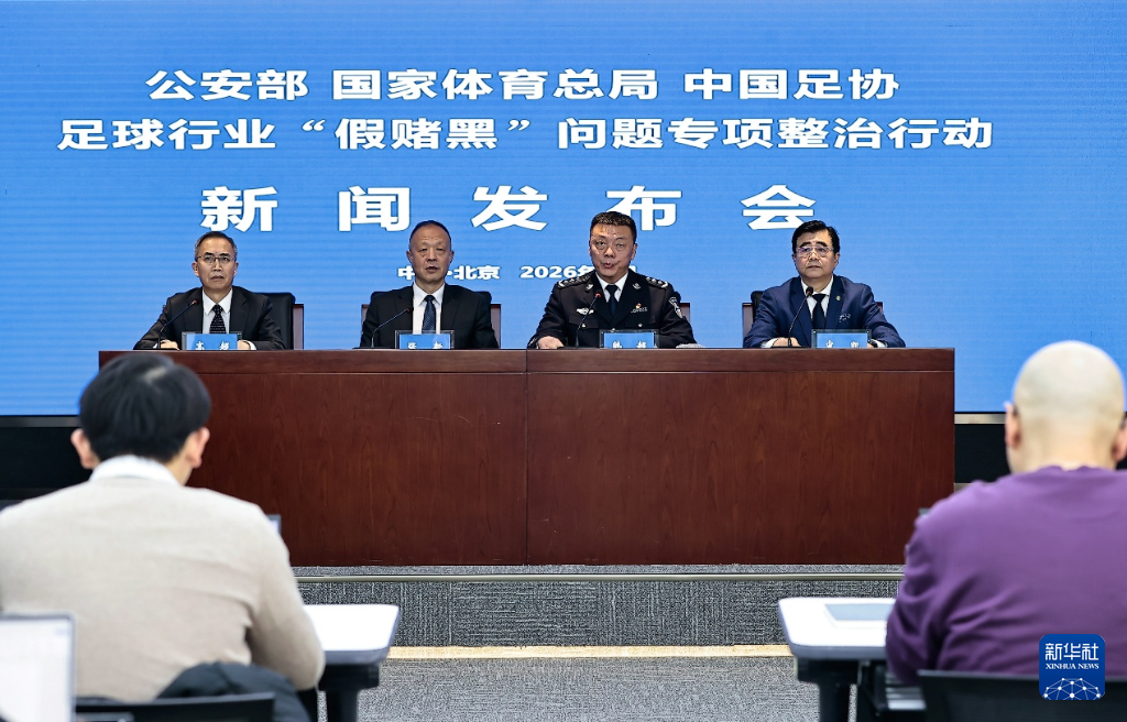 新华社北京1月29日电(记者肖世尧)29日,公安部、国家体育总局、中国足协在北京联合召开足球行业“假赌黑”问题专项整治行动新闻发布会,通报公安机关依法严肃查处足球领域赌球、假球等违法犯罪情况,以及中国足协对涉案人员和俱乐部的纪律处罚情况。陈戌源、李铁等73人被终身禁止从事足球活动,天津津门虎等13家俱乐部被扣除2026赛季积分并罚款。