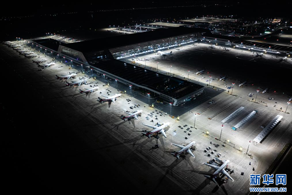 图为凌晨拍摄的鄂州花湖国际机场停机坪一角。新华社记者 肖艺九 摄