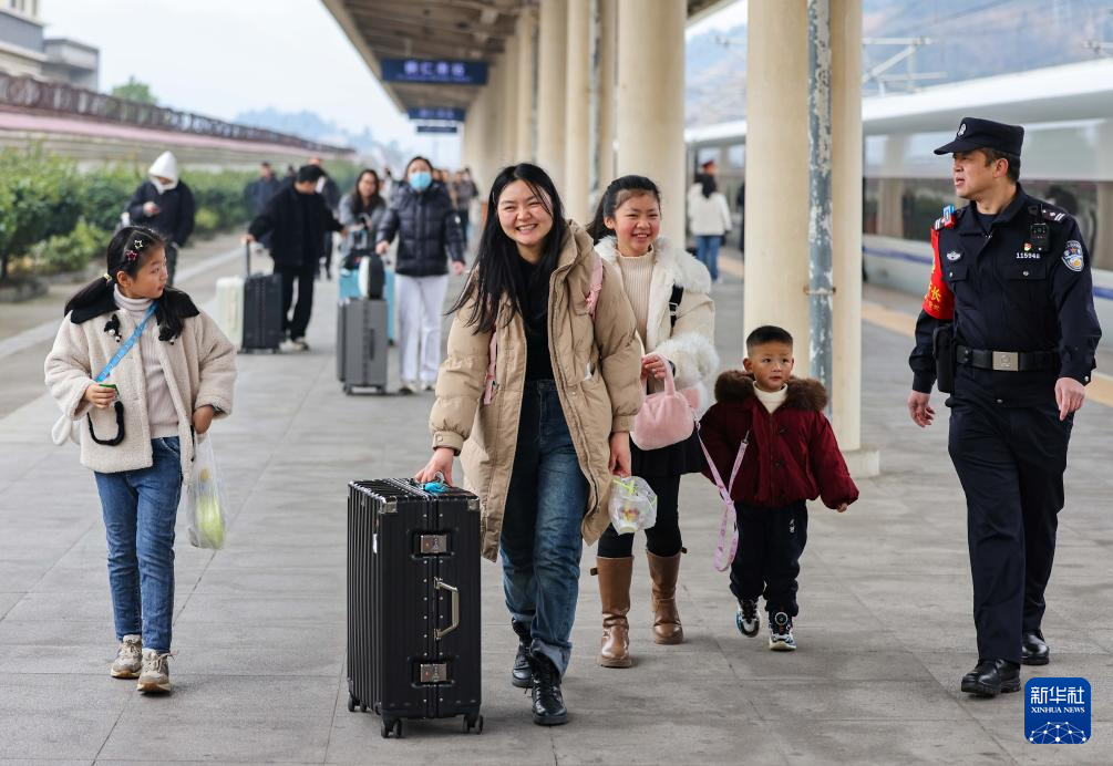 2月2日,旅客在沪昆高铁贵州铜仁南站转乘。新华社发(胡攀学摄)