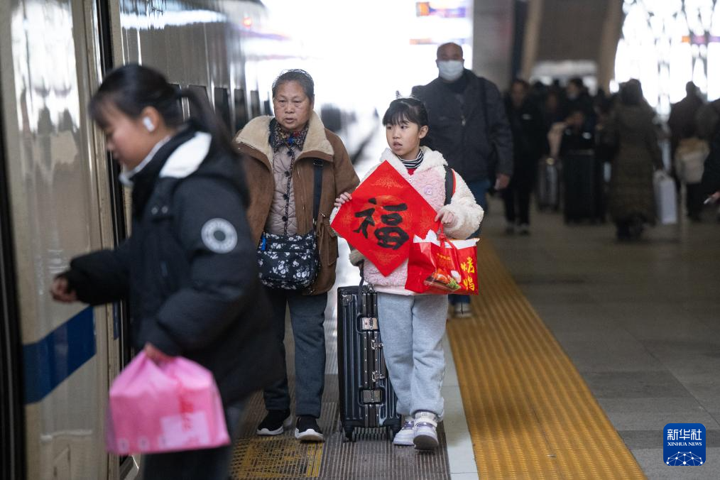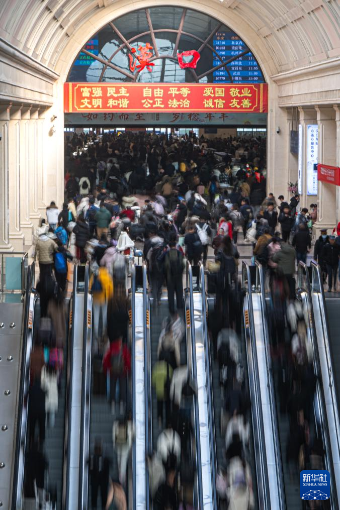 2月2日,在湖北省武汉市汉口火车站,旅客进站乘车。新华社记者 肖艺九 摄、