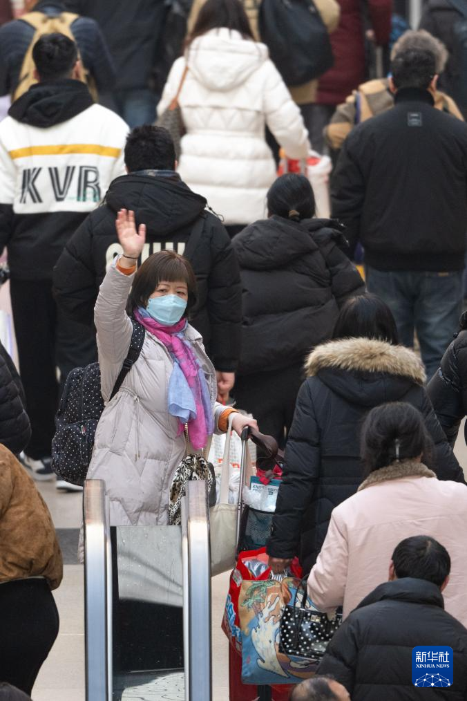 2月2日,在湖北省武汉市汉口火车站,旅客进站时挥手和送行的人告别。新华社记者 肖艺九 摄