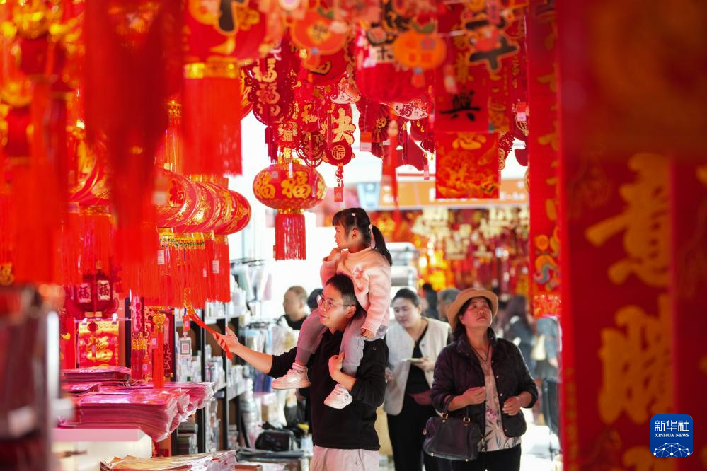 2月1日,市民在云南省昆明市俊发·新螺蛳湾国际商贸城选购春节饰品。新华社发(郝亚鑫摄)