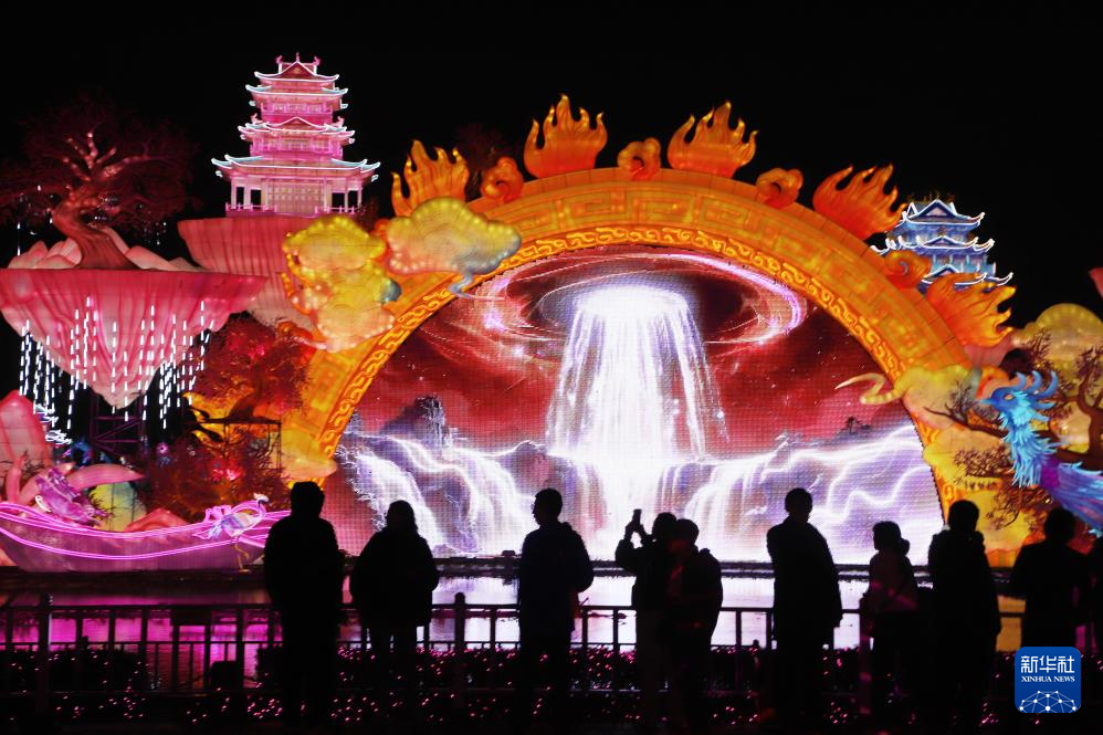 2月2日,游客在“欢乐光域·厦门园博苑灯会”上赏灯游玩。新华社发(曾德猛摄)