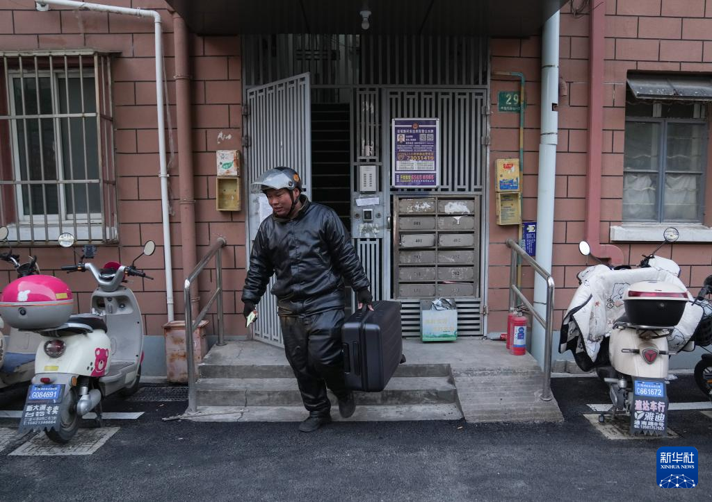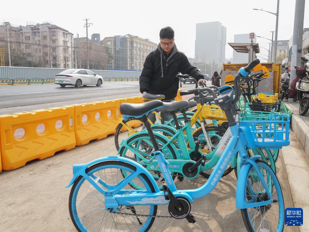 2月2日,程燚准备骑车前往上海地铁1号线汶水路站,然后乘坐地铁前往上海南站。新华社记者 丁汀 摄