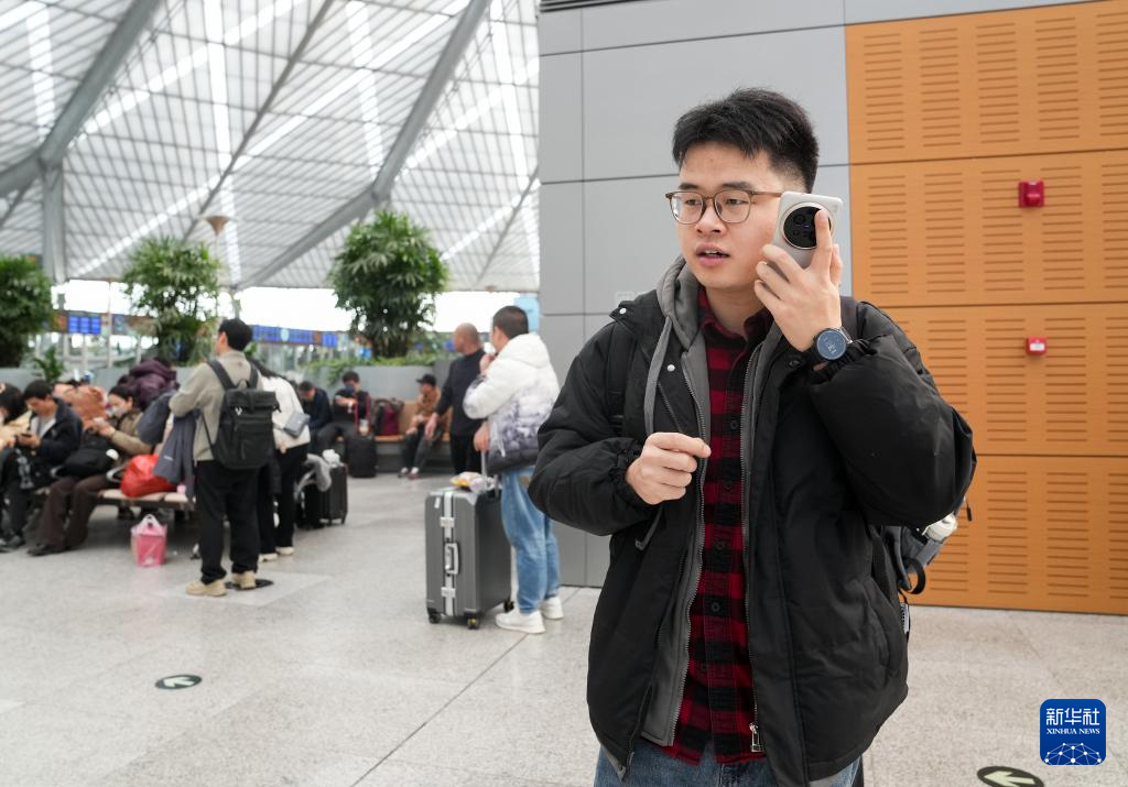 今年春运首日,程燚只背了一个书包踏上归途。他最大的感受是“从容”——当沉重的行李箱暂时“消失”,团圆的路,变得更加轻松。新华社记者 丁汀 摄