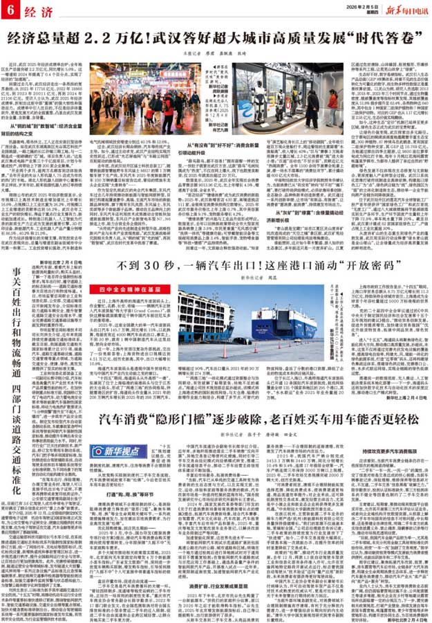 近日,武汉2025年经济成绩单出炉:全年地区生产总值突破2.2万亿元,同比增长5.6%。这一增速较2024年提高了0.4个百分点,实现了经济的“加速跑”。