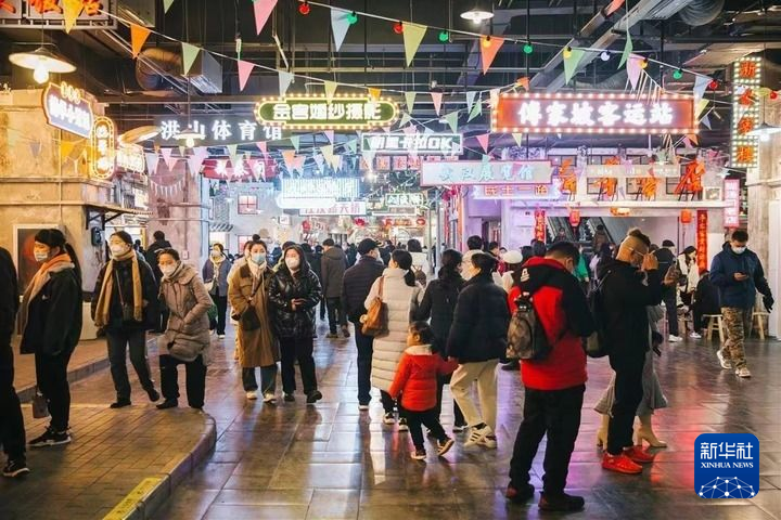 游客在梦时代“楚风汉味”美食街区游玩。新华社记者 龚联康 摄