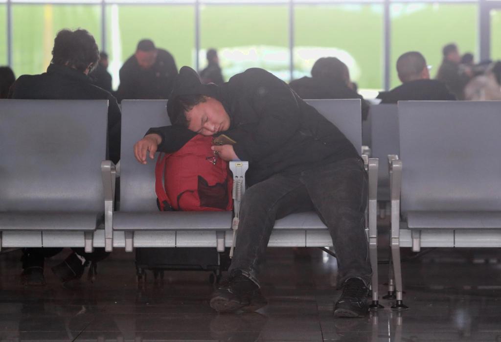 2月2日,旅客在江苏扬州东站候车大厅休息。新华社发(孟德龙摄)