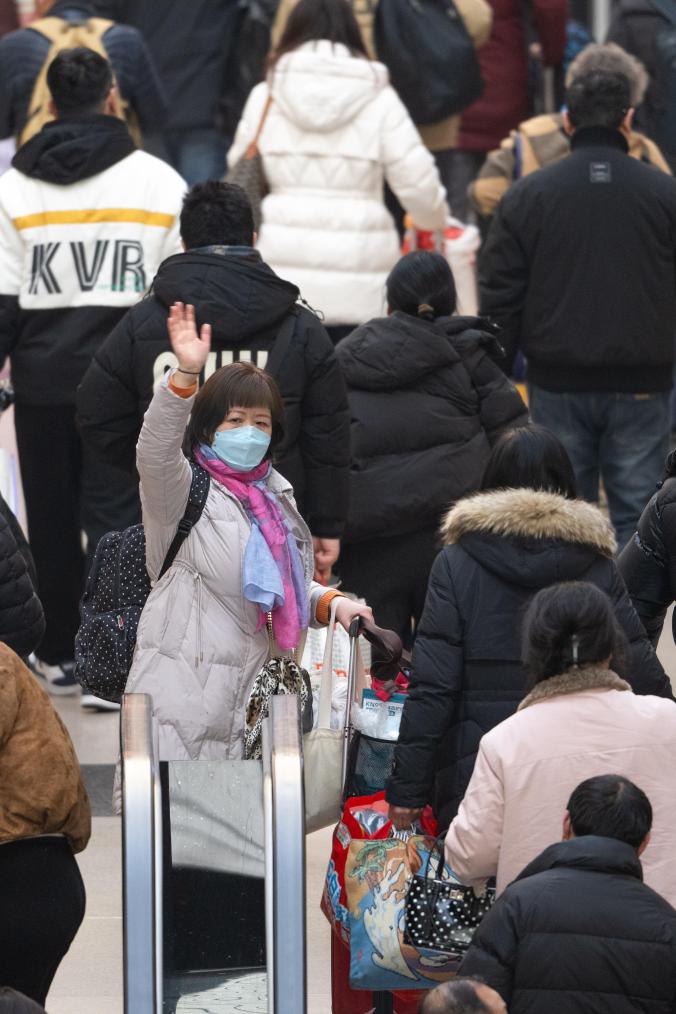 2月2日,在湖北武汉汉口火车站,旅客进站时挥手和送行的人告别。新华社记者 肖艺九 摄