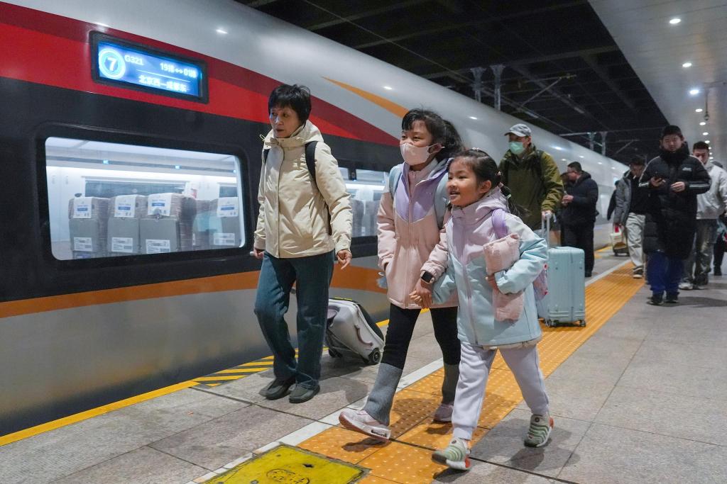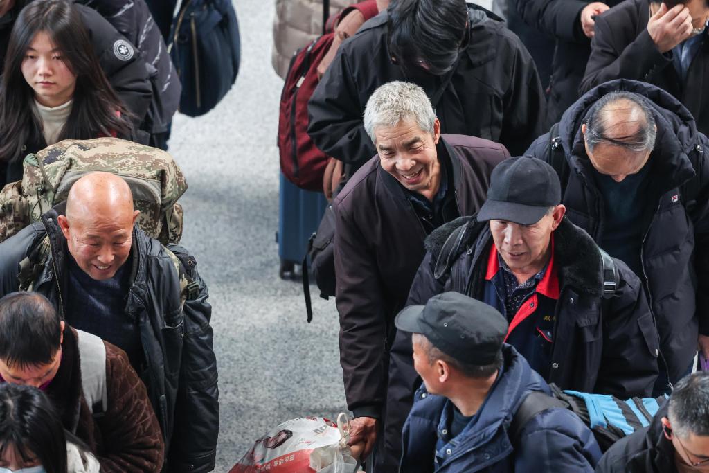 2月2日,旅客从山东胶州北站出站。新华社发(王昭脉摄)