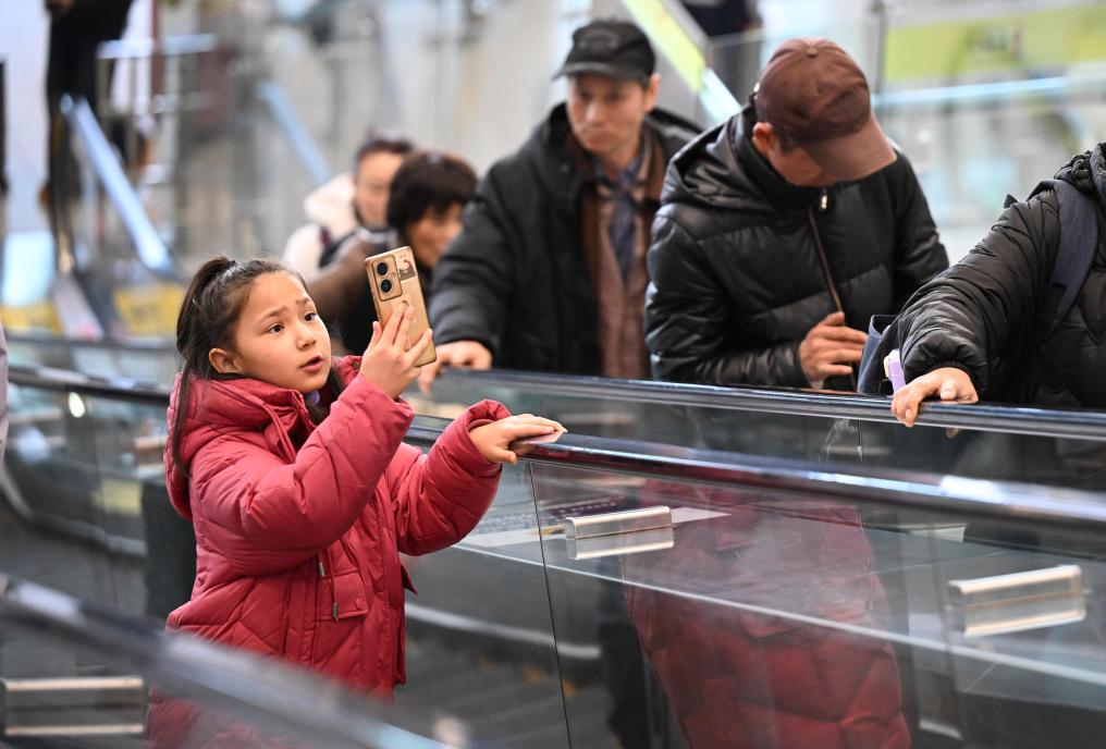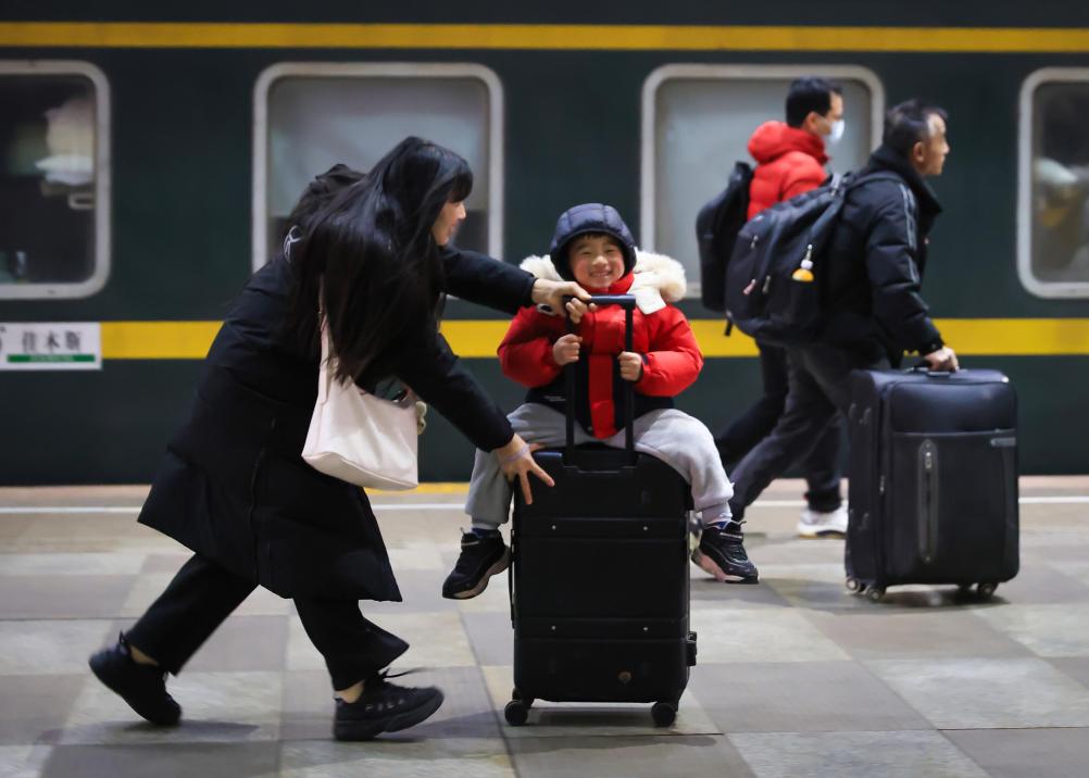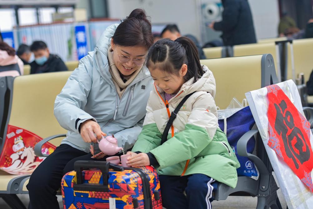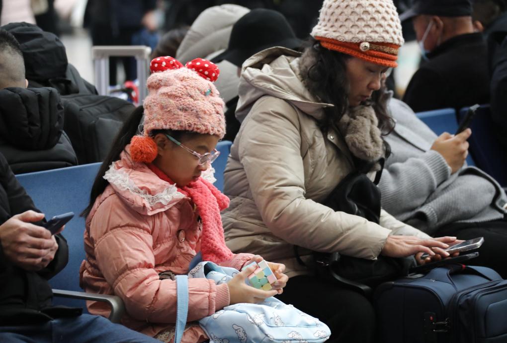 2月2日,旅客带着孩子在兰州西站乘车出行。新华社发(侯崇慧摄)把团圆的笑容存进手机