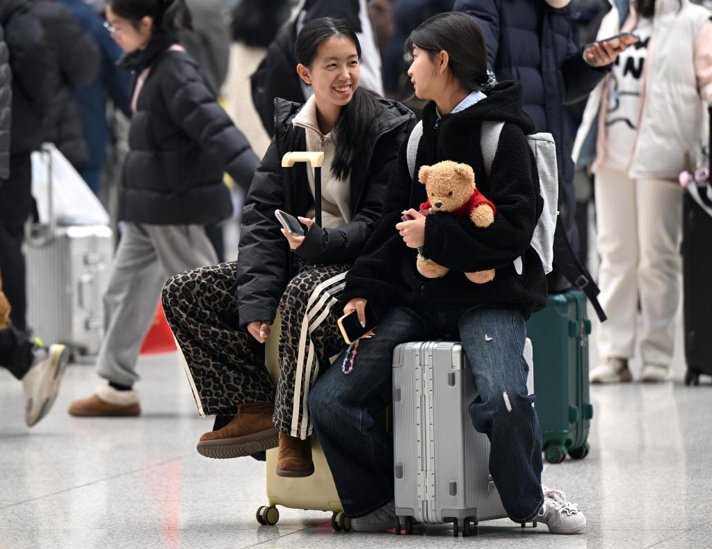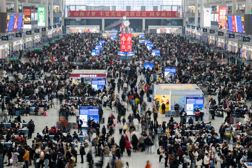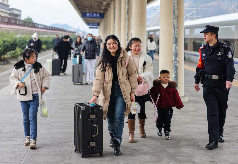 2月2日,旅客在沪昆高铁贵州铜仁南站转乘。新华社发(胡攀学摄)