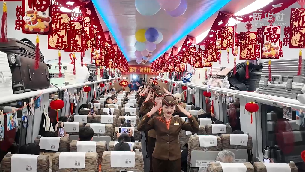“列车春晚”是D38次列车延续多年的传统。这趟列车的前身可追溯至1949年开行的138次列车,作为原铁道部授予的首批红旗列车之一,从138次到38次、K38次、T38次、Z38次,再到如今的D38次,77年来,它历经多次更名,但“红旗列车”的金字招牌始终闪亮。这个小年夜,这趟列车继续载着旅客们的喜悦与期盼,驶向团圆。