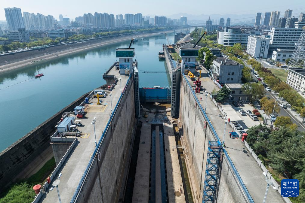 4月2日拍摄的三峡南线船闸停航检修现场(无人机照片)。新华社记者 伍志尊 摄